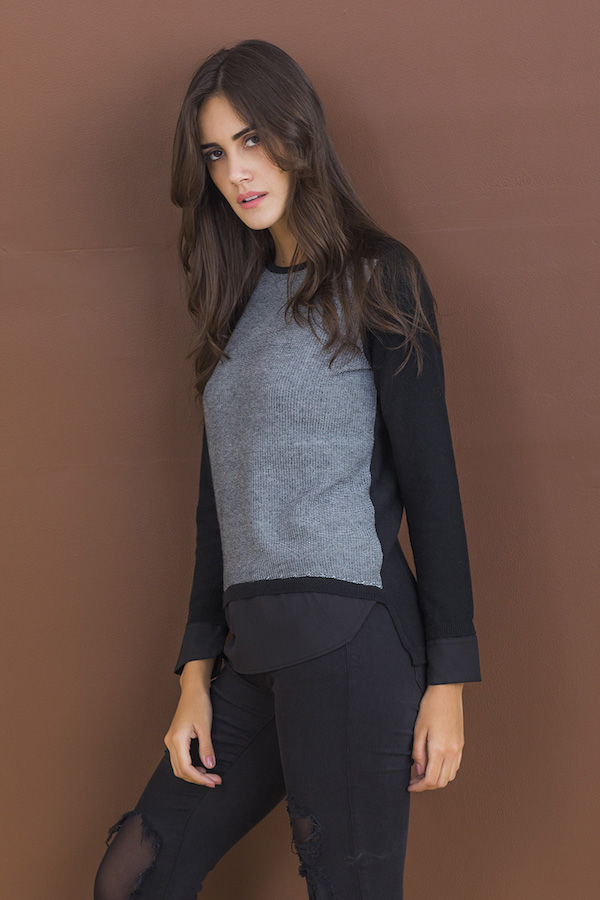 MD-1518 - Two looks in one with this great color blocking and the look of a layered woven undergarment.