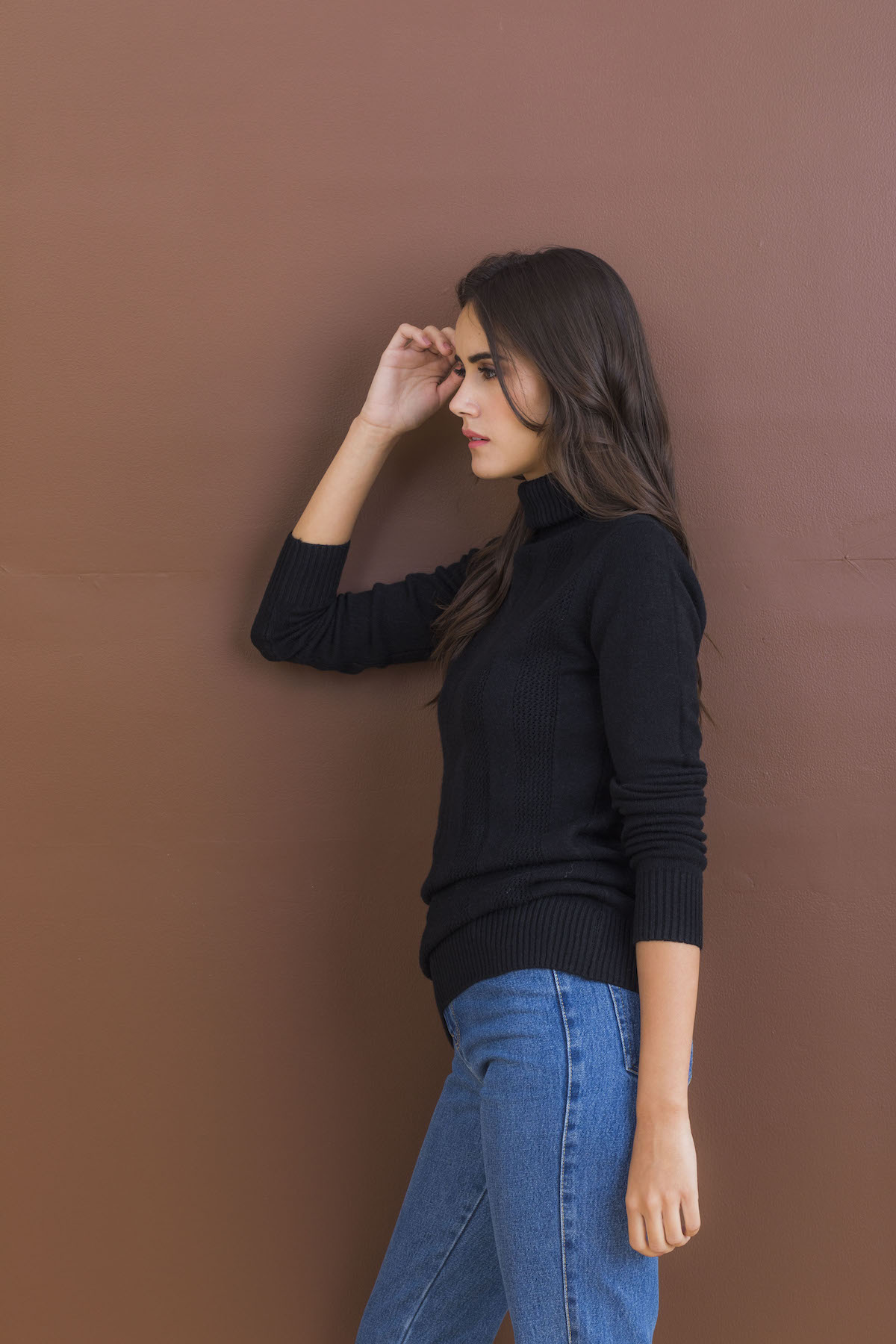 MD-1549 - Vertical knit design turtle neck gives it a fresh new look.