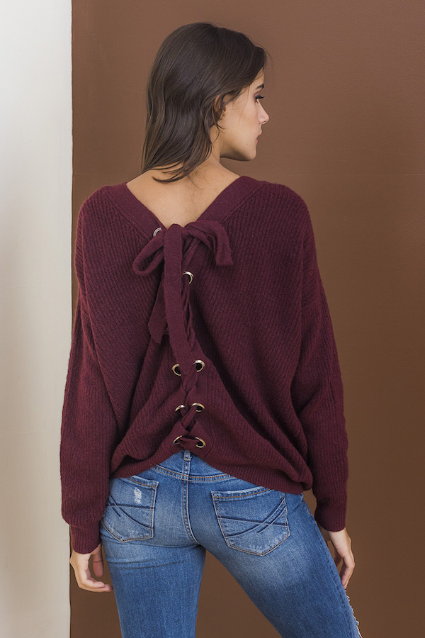 MD-1566 - A soft and cozy sweater yet sexy lace up the back a design that you will look good form all angles.
