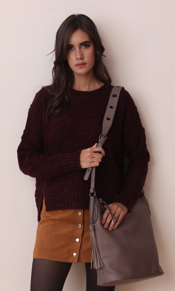 MH-628 Beauty is in the details. This crossbody stands out with its rivets studded straps and trendy long tassels that completely revamp this classic spacious crossbody bucket bag.